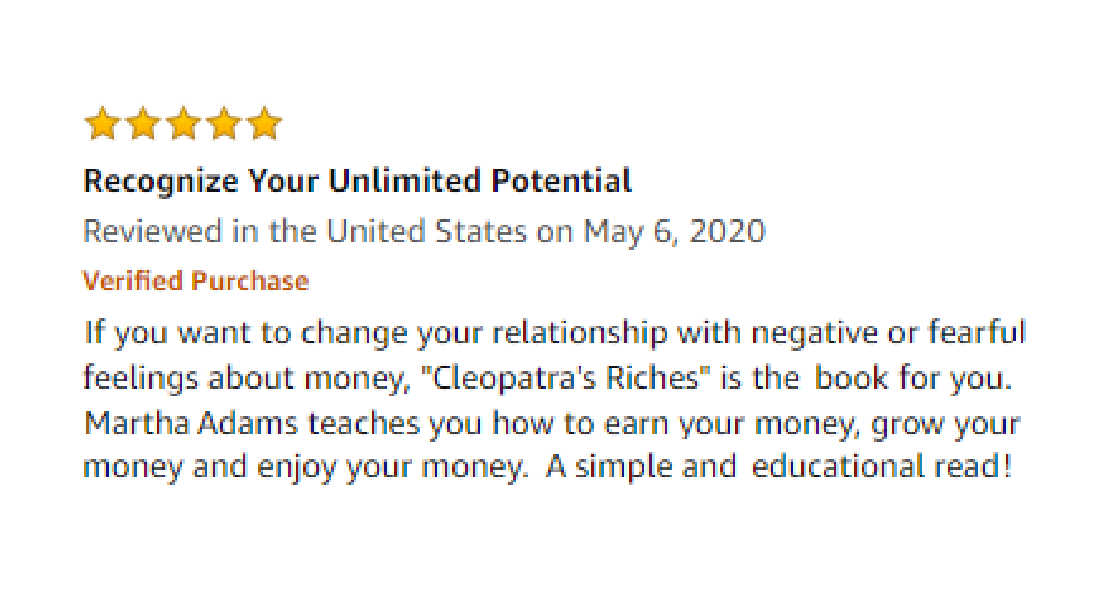 THE 4R PROCESS™ online program uses the lessons in Cleopatra’s Riches to help you Elevate Your Results as we walk through our Money Story together. This program includes…